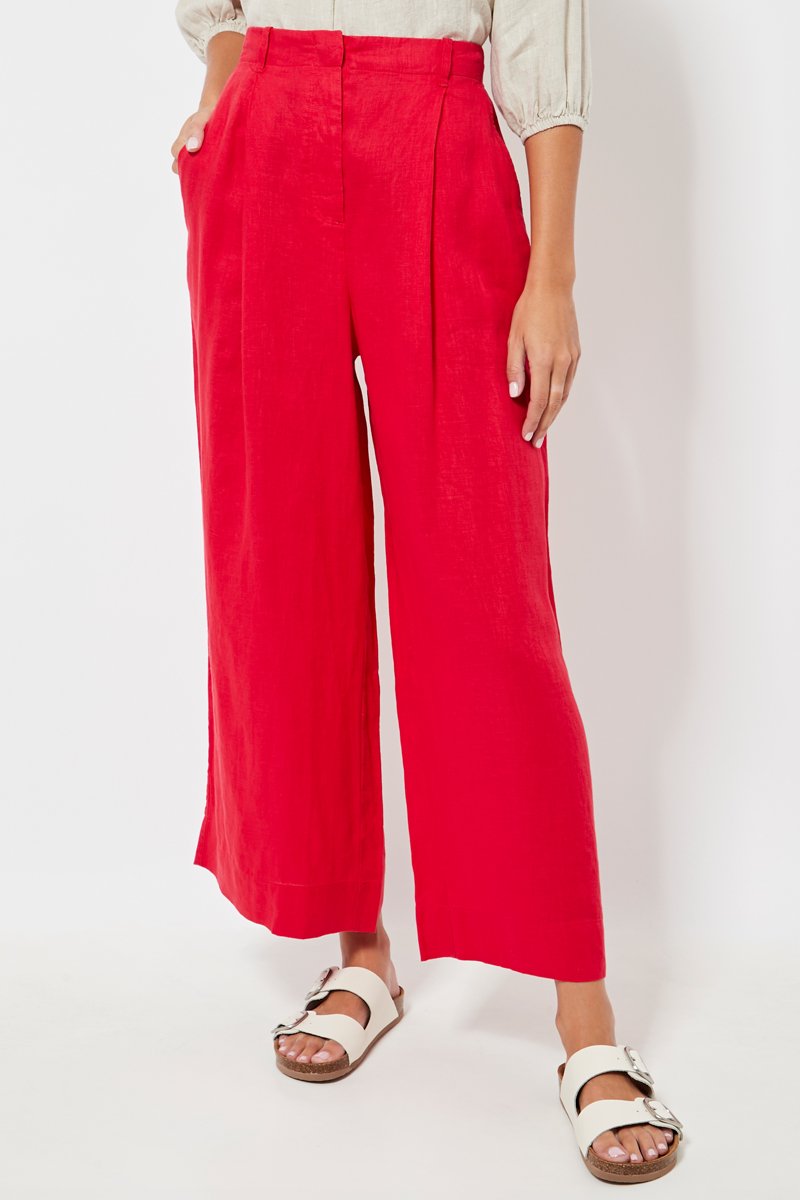 Linnen Broek Hoge Taille Wide Legs - Rood