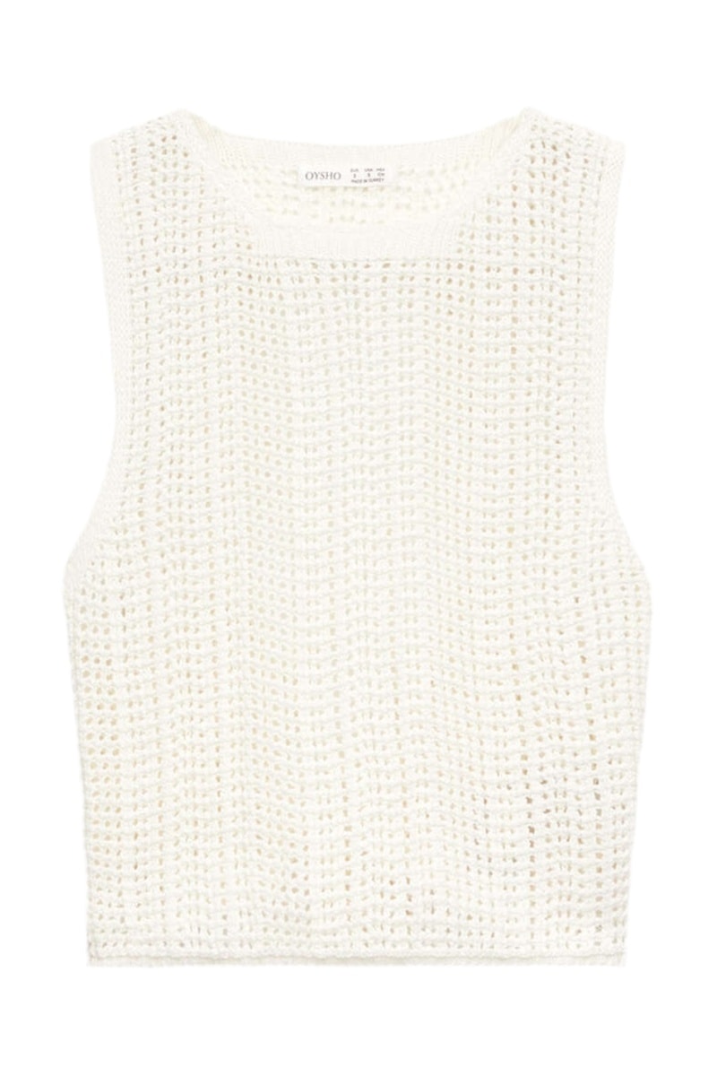 Opengewerkt en geweven top.