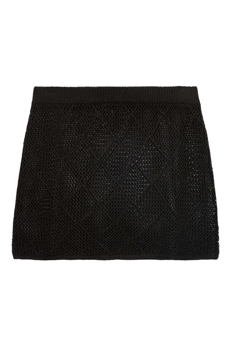 Opengewerkt geweven rok recht model.
