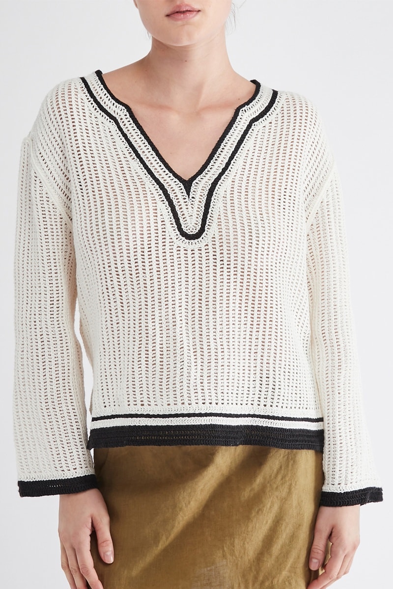 Opengewerkt geweven trui.