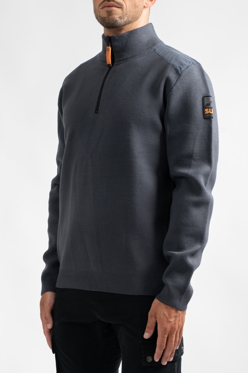 Opstaande kraag met rits.