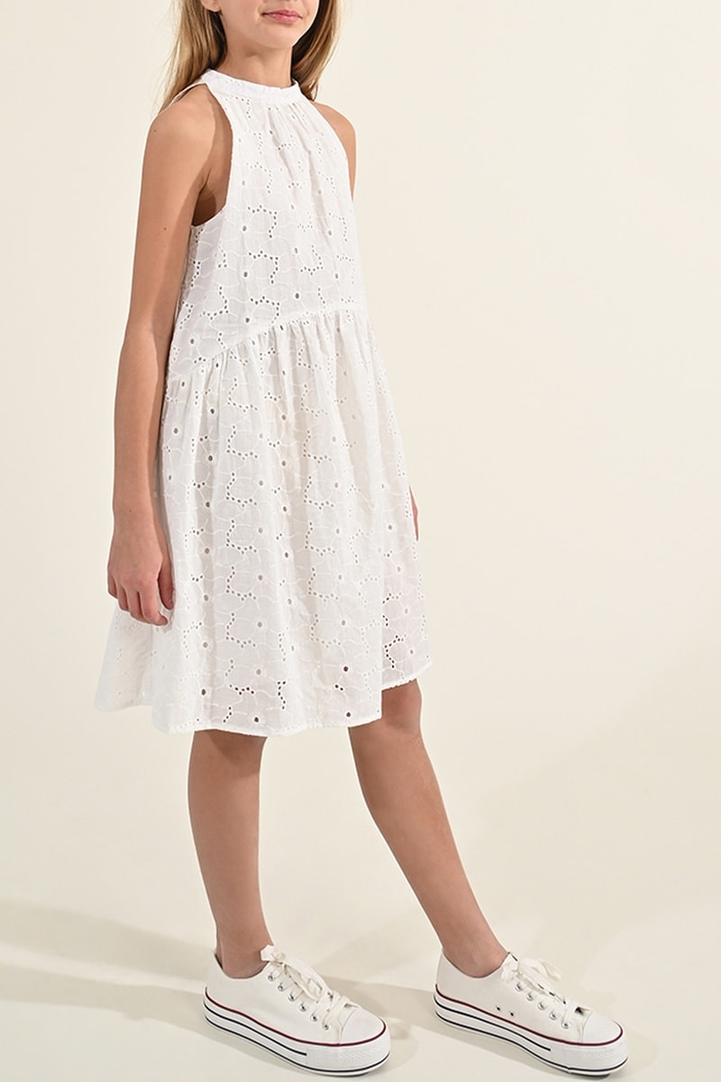 Trapezium Jurk met Engelse Borduursels - Wit - Molly Girl