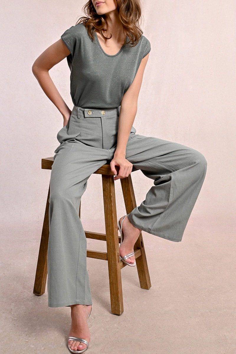 Linnen Broek Hoge Taille - Kaki