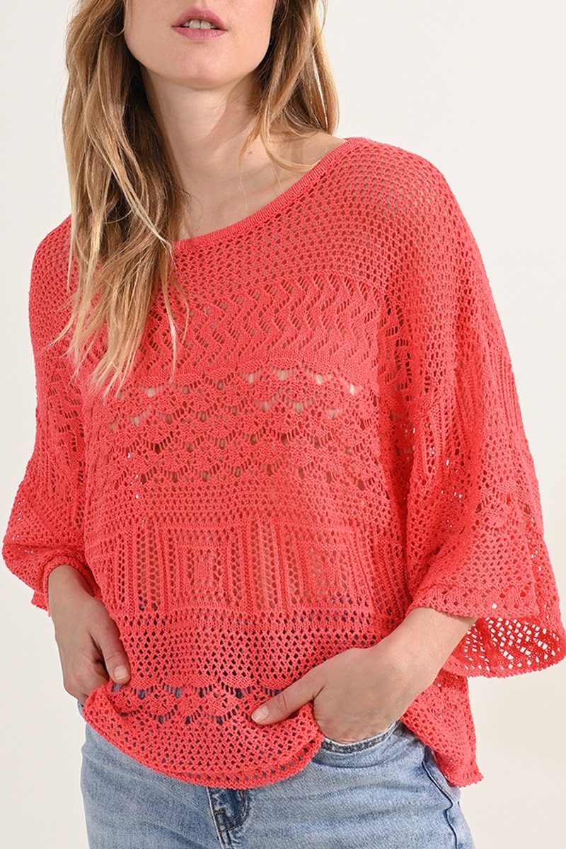 Guipurekanten Top - Koraalrood - Molly Bracken