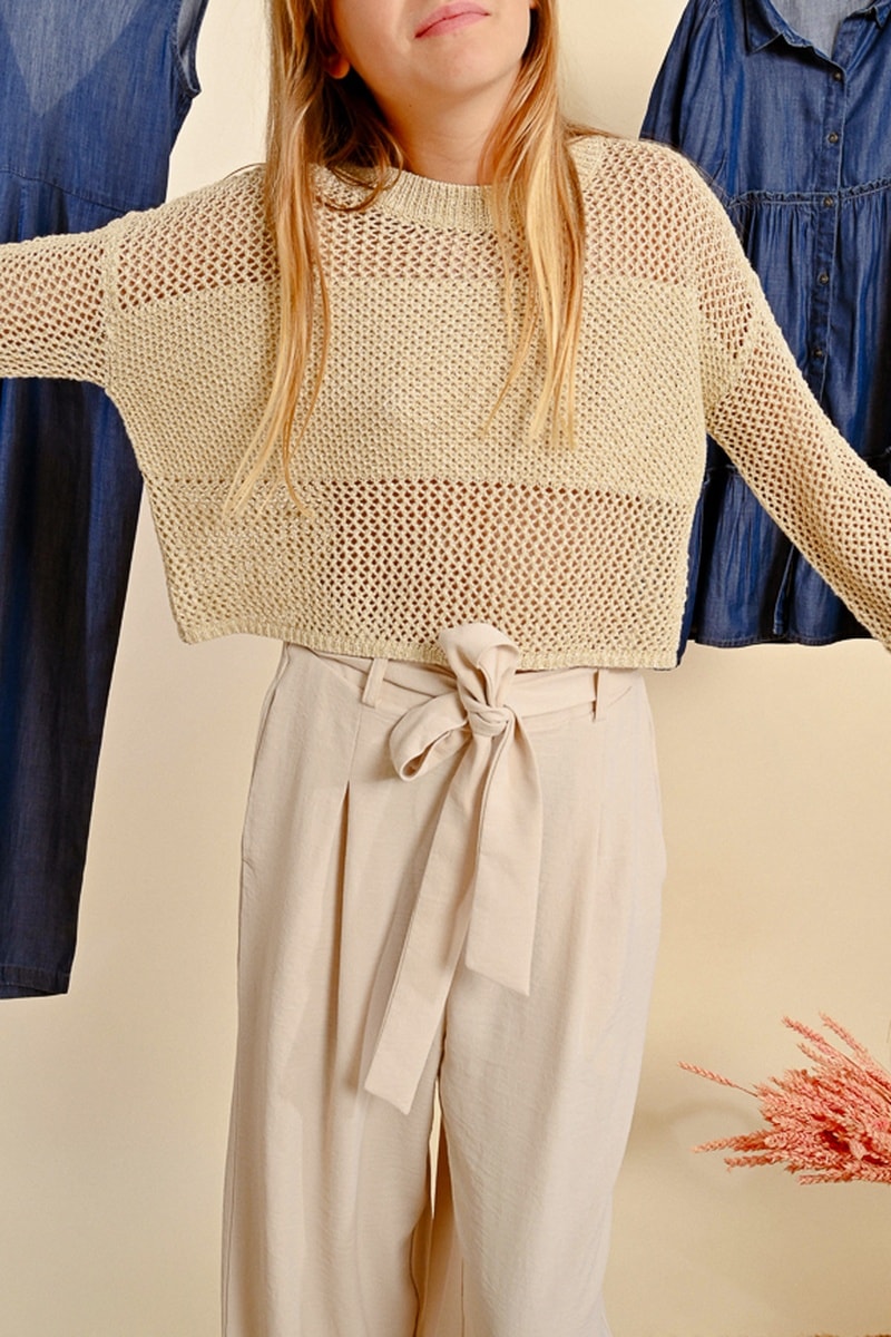 Opengewerkt geweven trui.