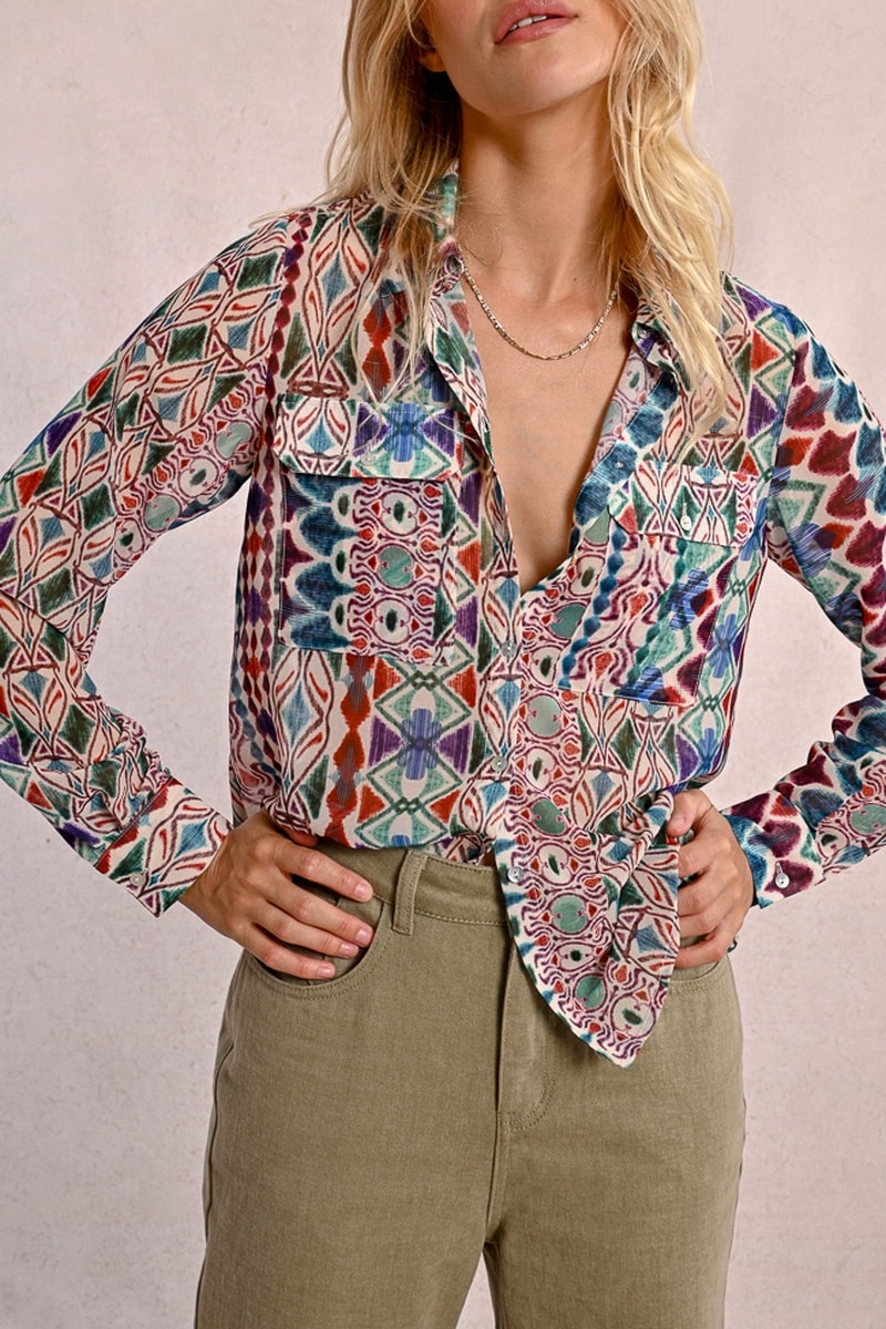Blouse met lange mouwen met knopen.