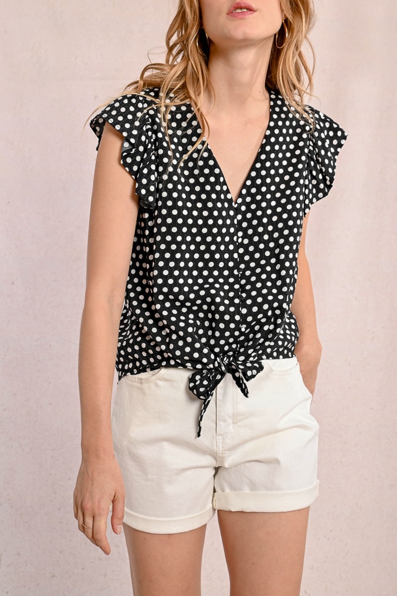 Blouse met vlindermouwen.