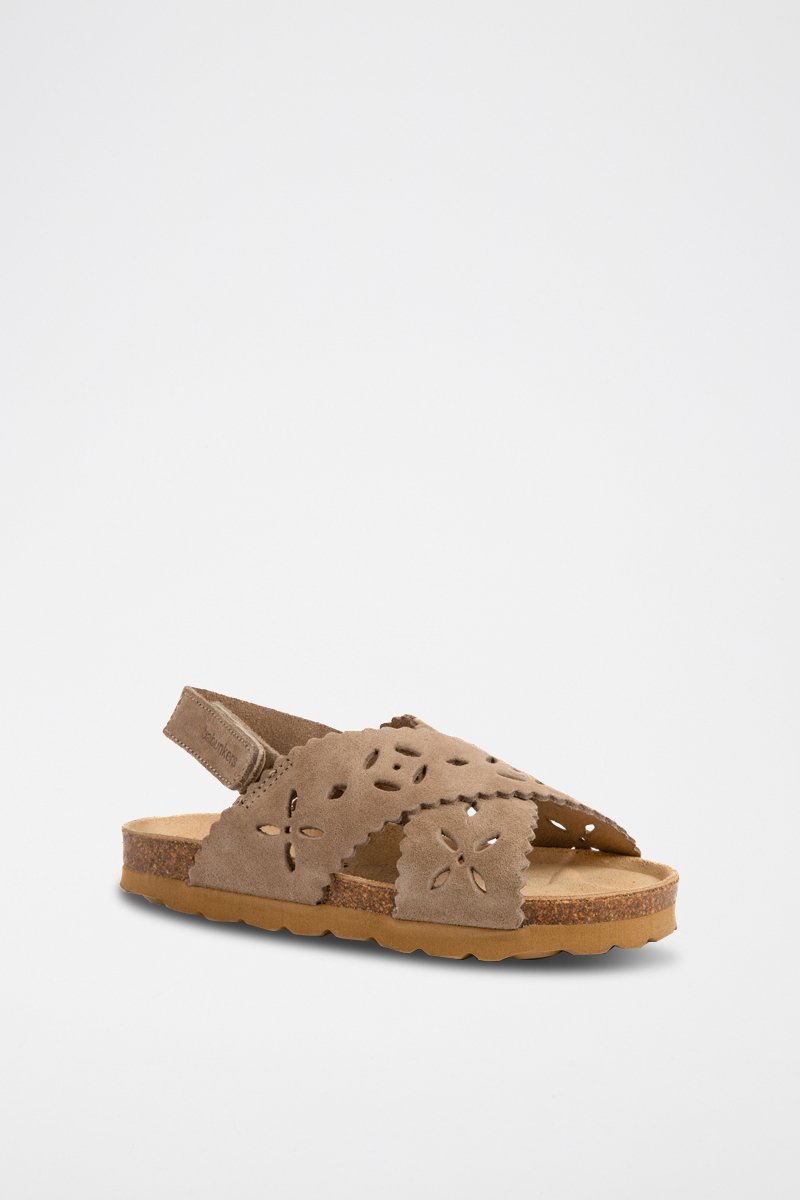 Opengewerkte bandjes met decoratief motief aan de voorkant.