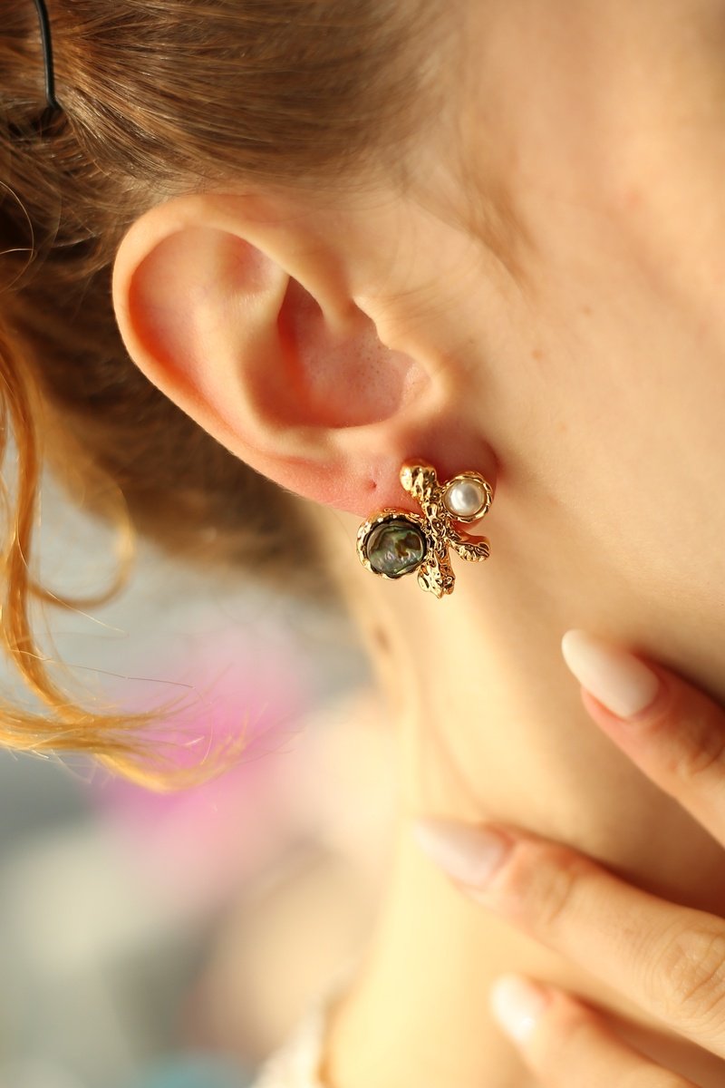 Materiaal: messing, koper, cultivéparels en parelmoer