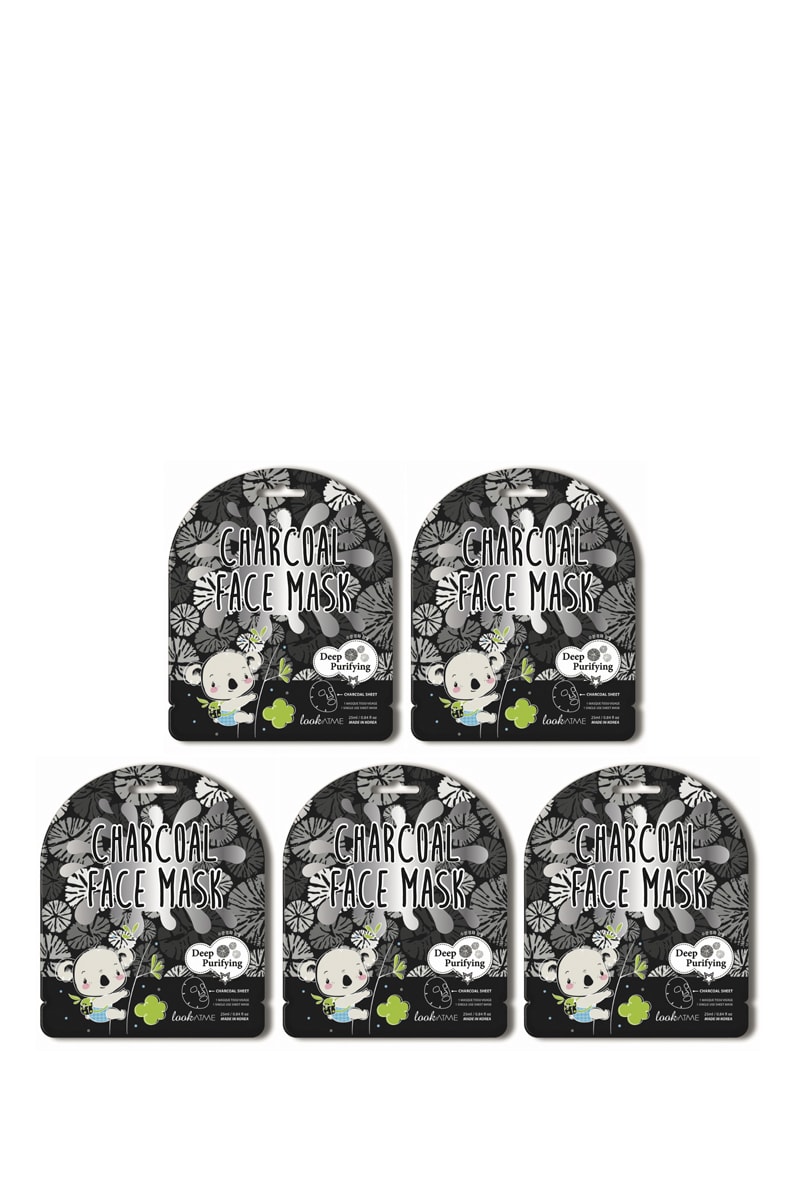 5 gezichtsmaskers met houtskool.