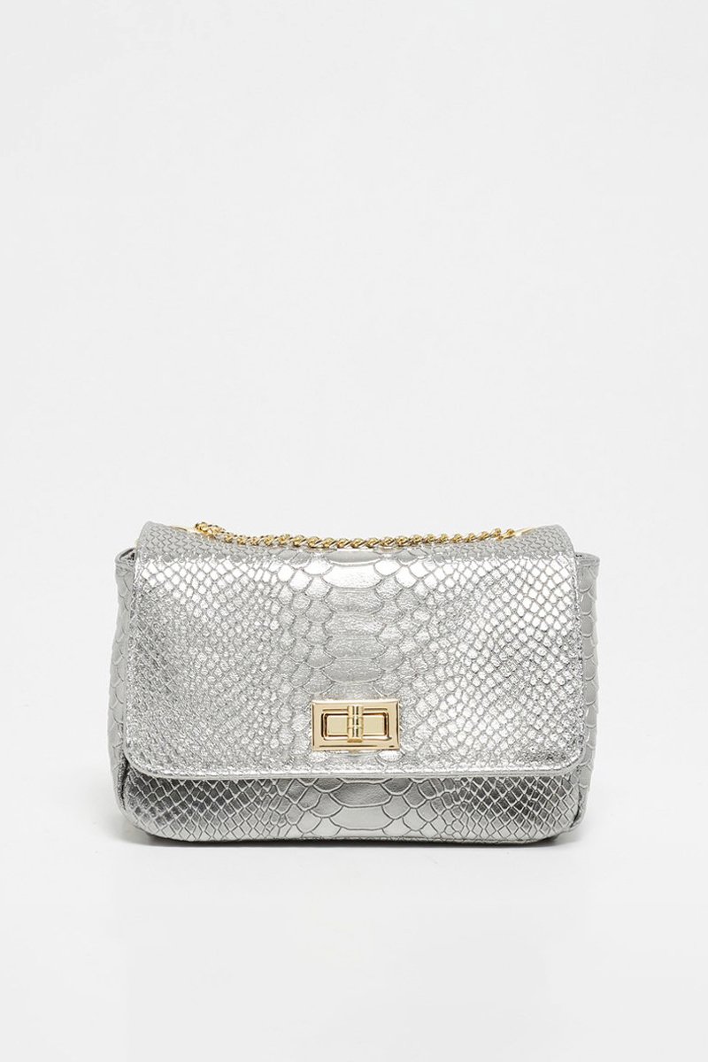 Leren Schoudertas Kiera - Zilverkleurig