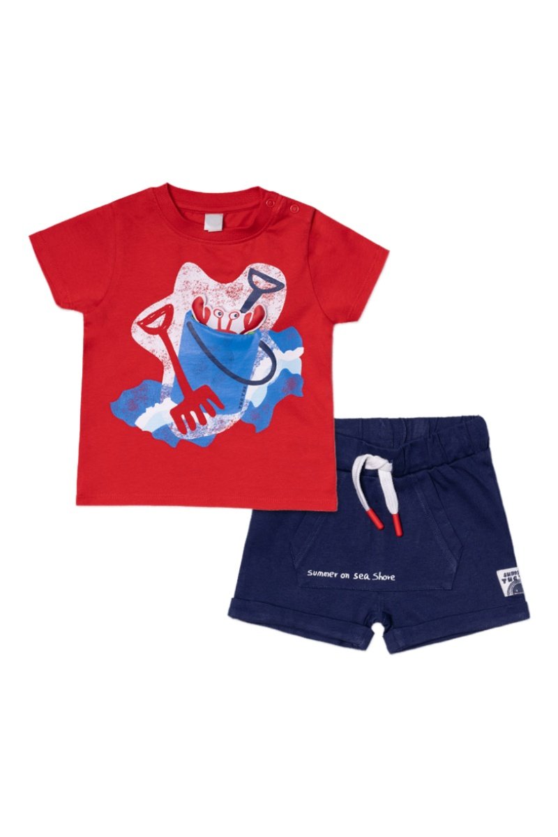T-shirt en short Beach Day - Rood en blauw