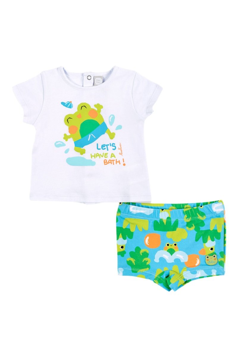 T-shirt en Zwembroekje Water Lilies - Wit en groen