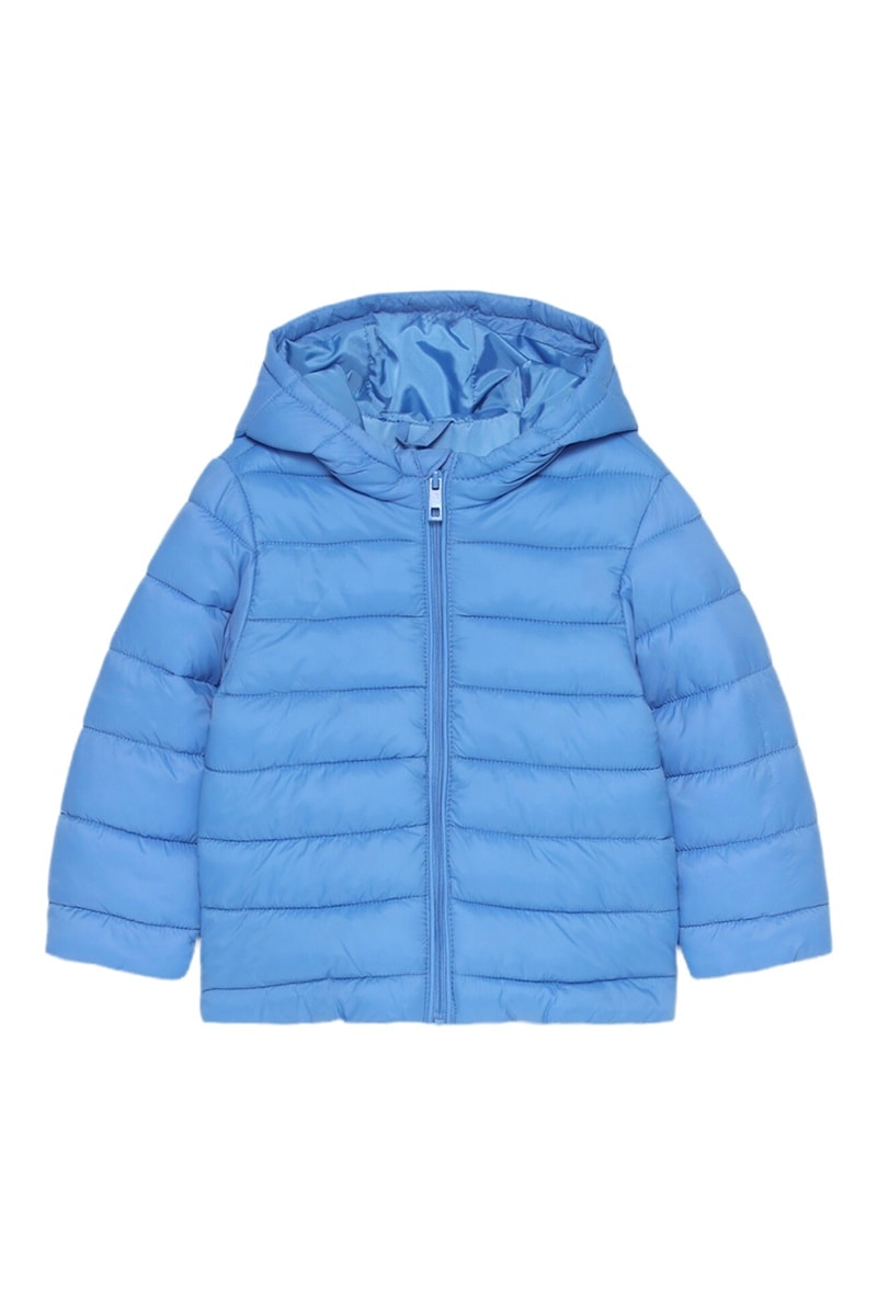 Gewatteerde jas met capuchon.