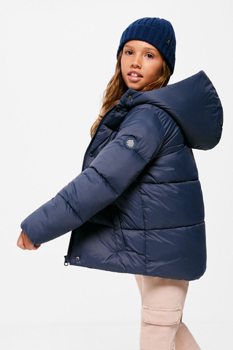 Gewatteerde jas met capuchon.