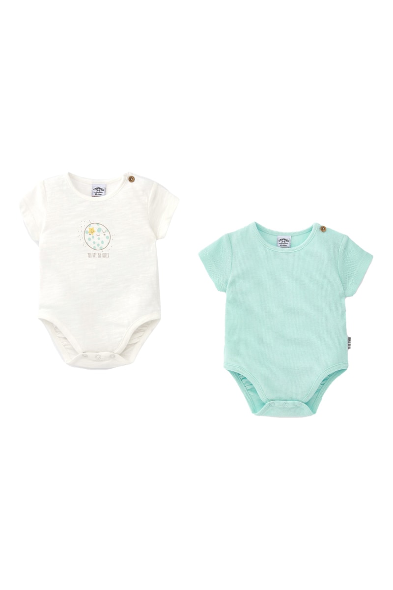 2 rompertjes van biologisch katoen.