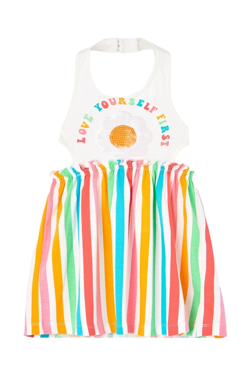 Streepmotief op het rokgedeelte.