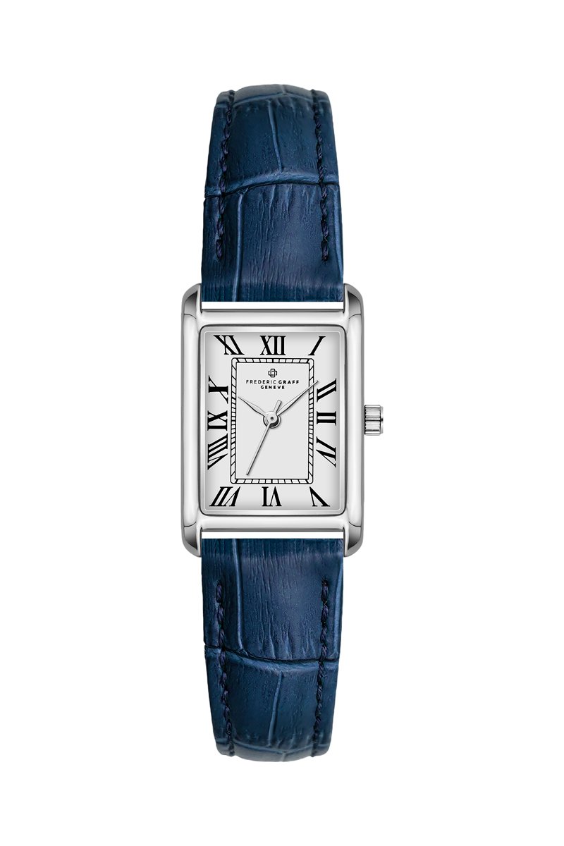 Leren Quartz Horloge - Donkerblauw en Zilverkleurig - Frederic Graff