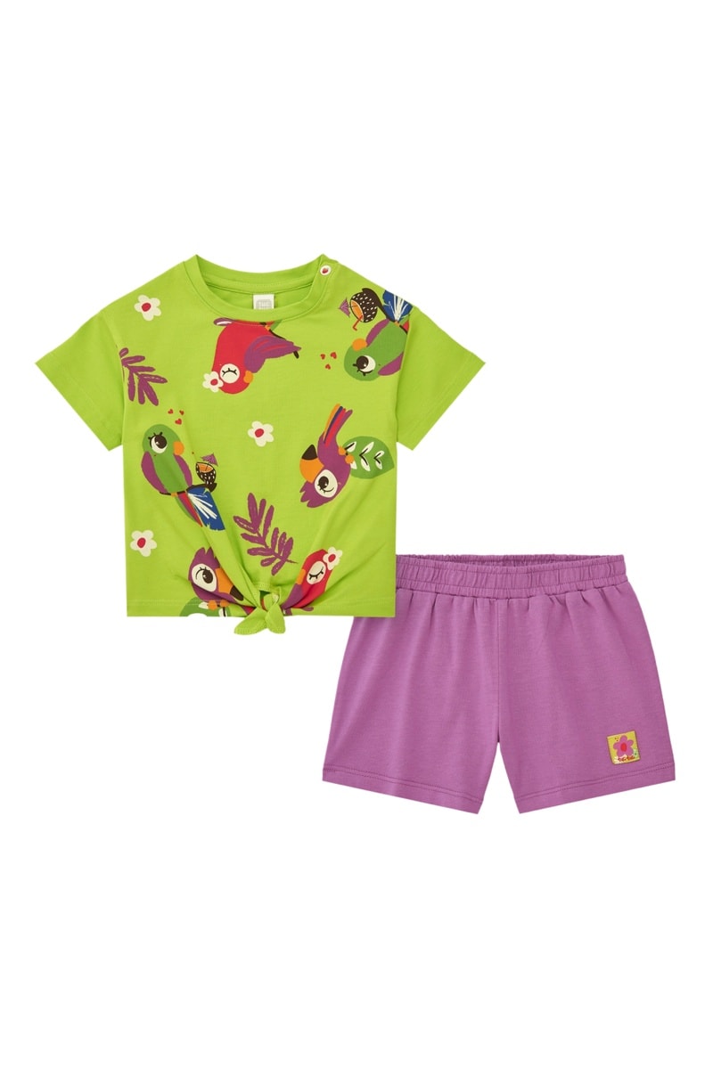 Geknoopt T-shirt en Short Vacay Feelings - Geel