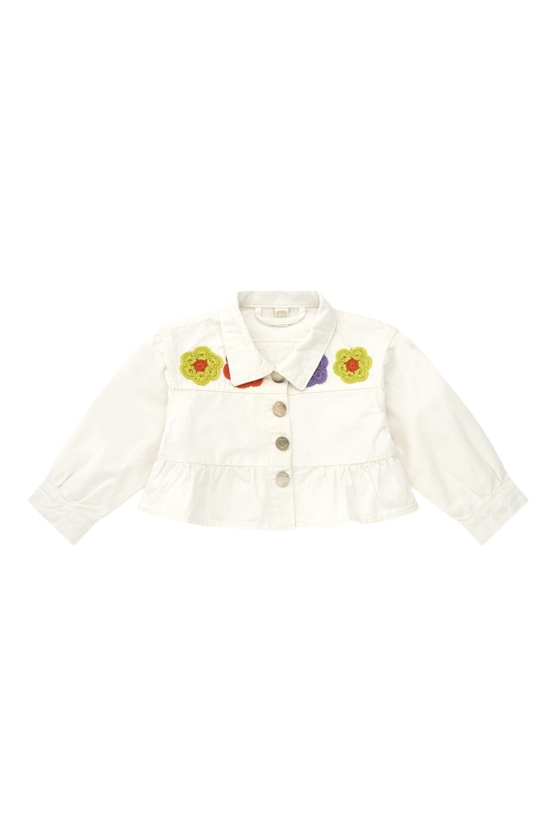 Gehaakt bloemmotief aan de voorkant.