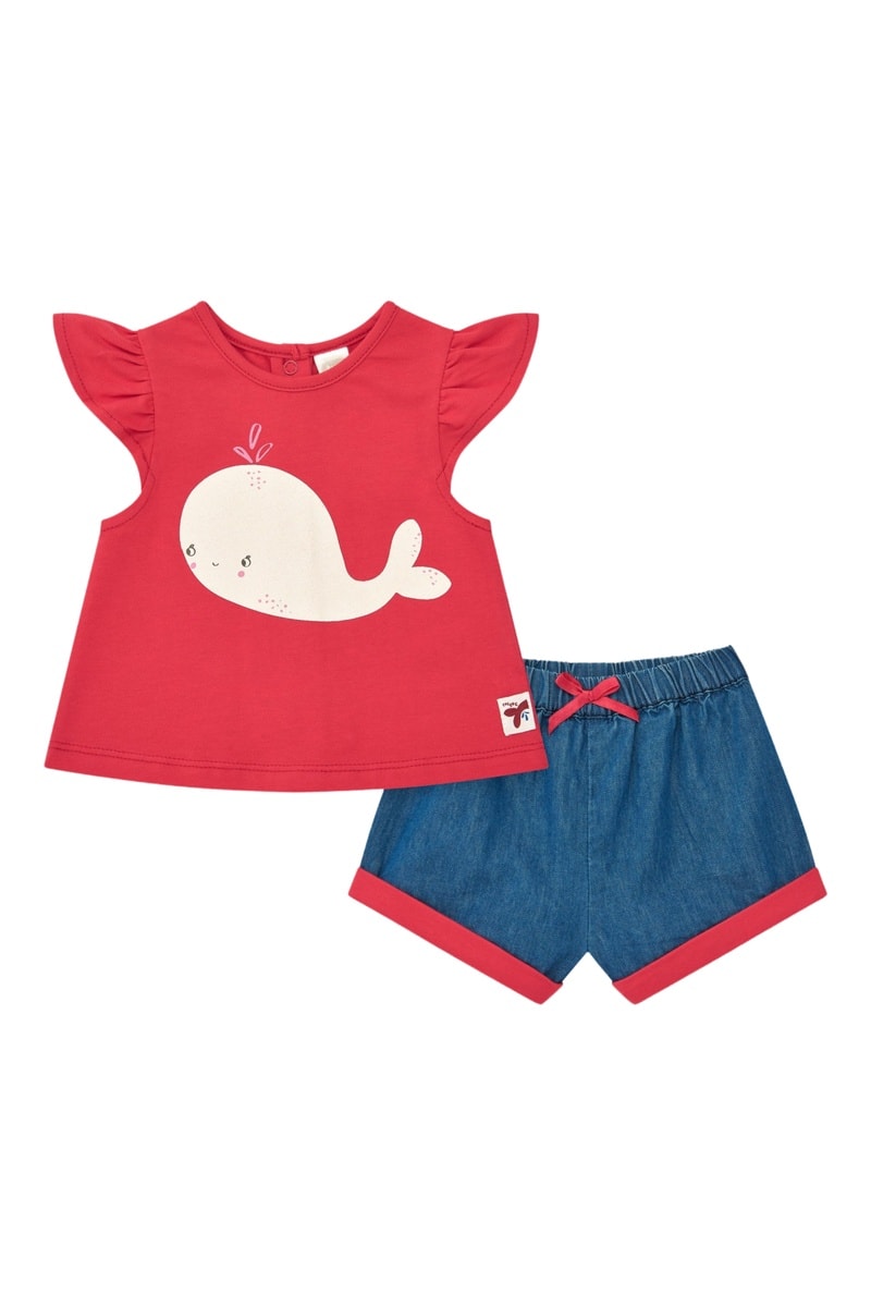 T-shirt en Spijkershort Under The Sea - Rood