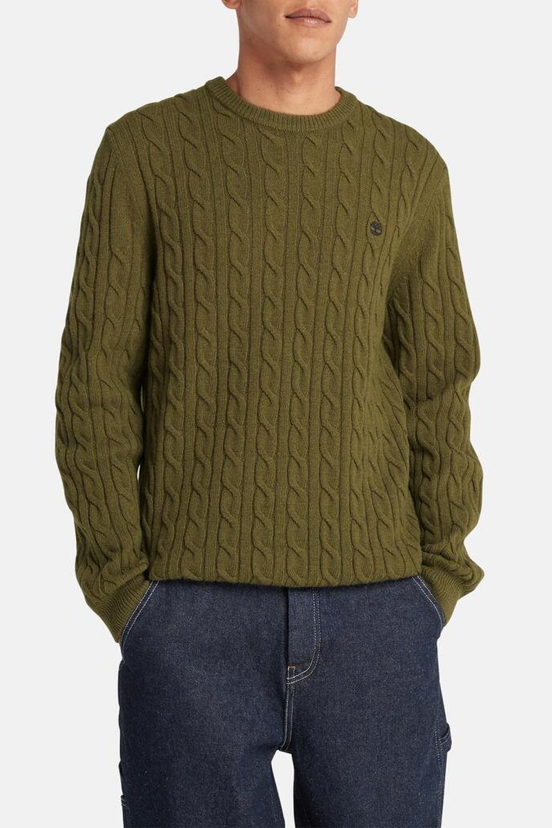 Wollen Trui Cable - Olijfgroen