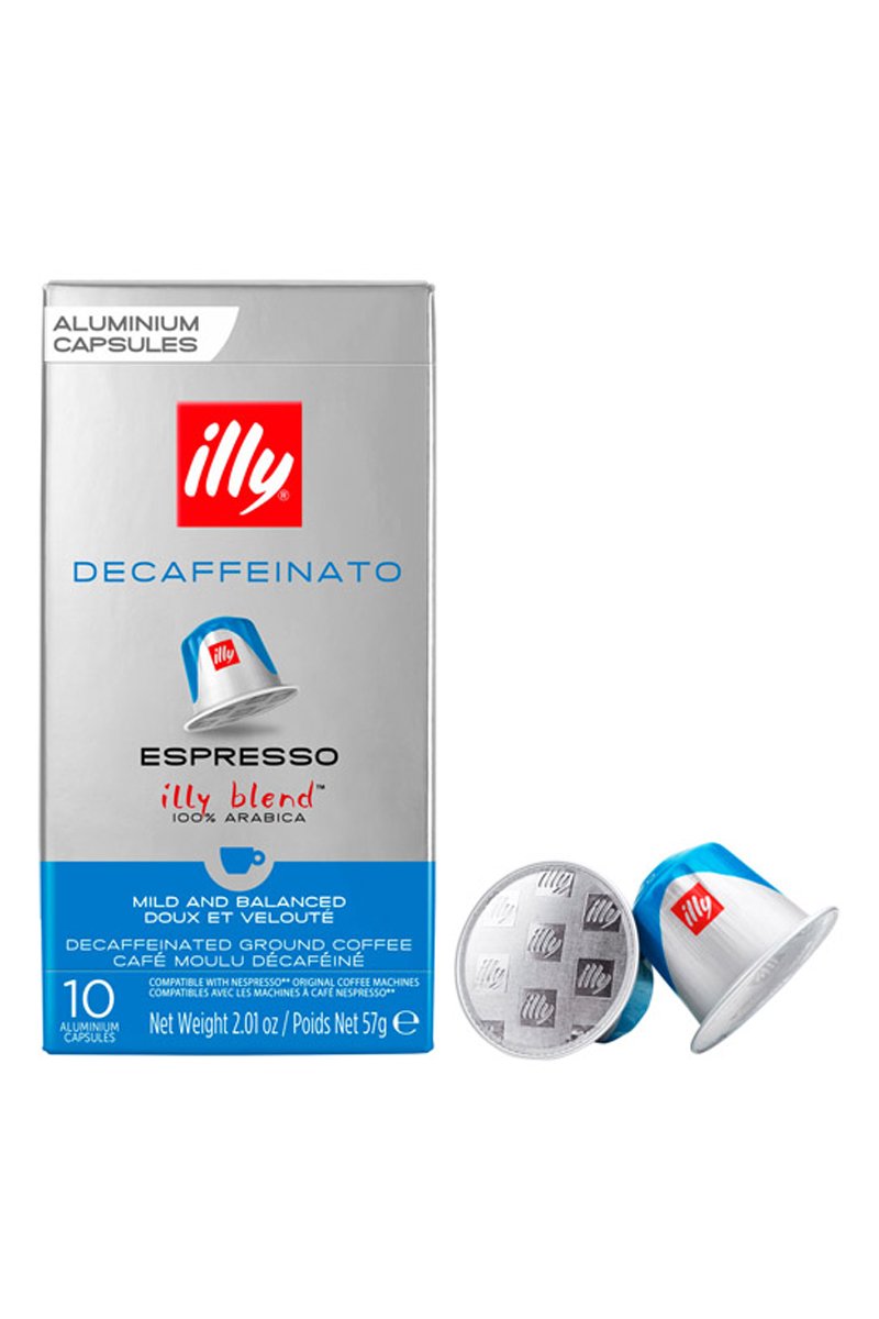 10 dozen met 10 cafeïnevrije koffiecapsules Illy.