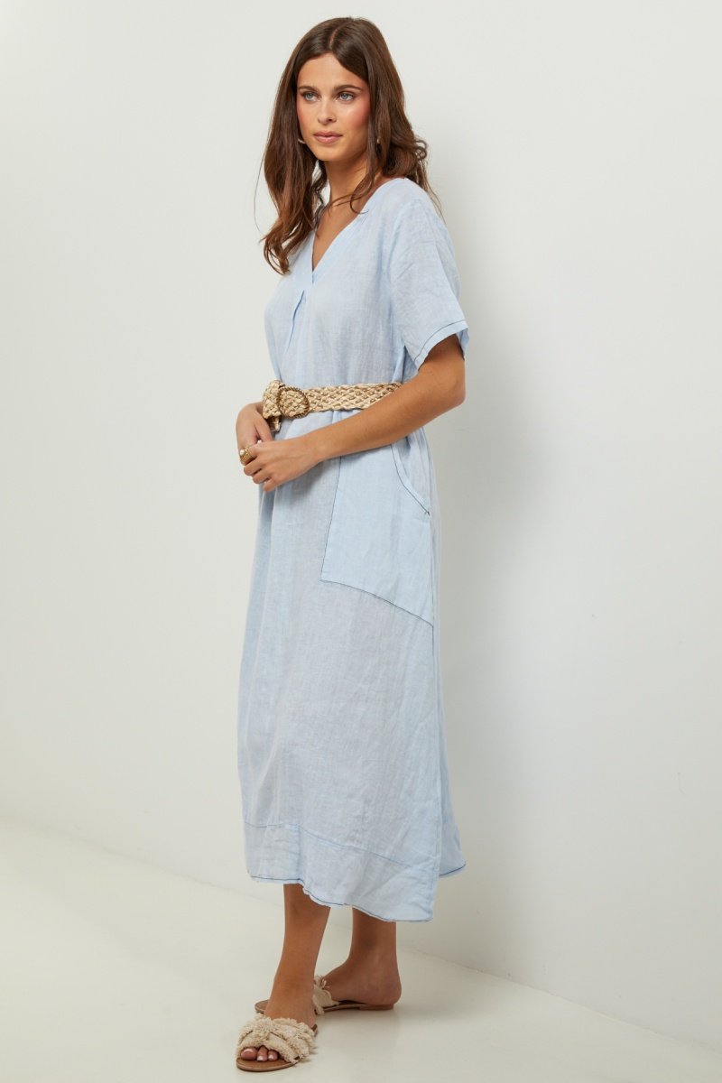 100% Linnen Jurk - Hemelsblauw - Hemelsblauw