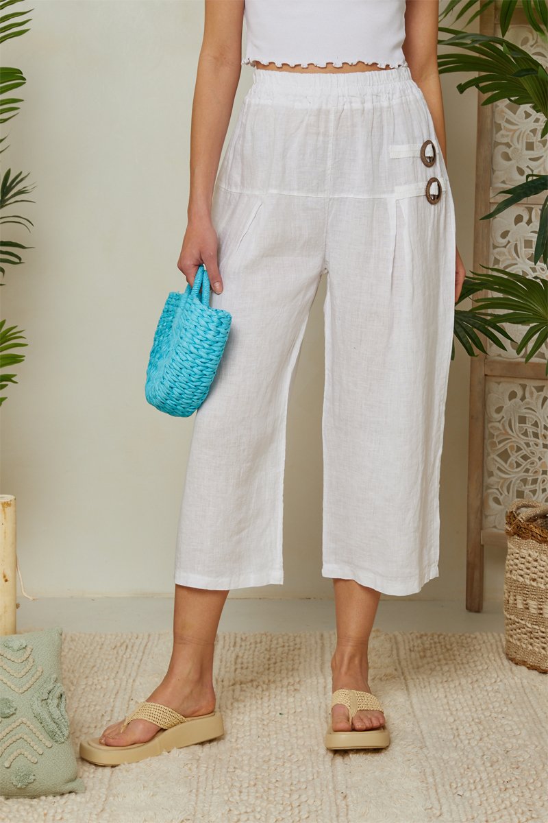 Linnen Driekwart Broek - Wit - Wit
