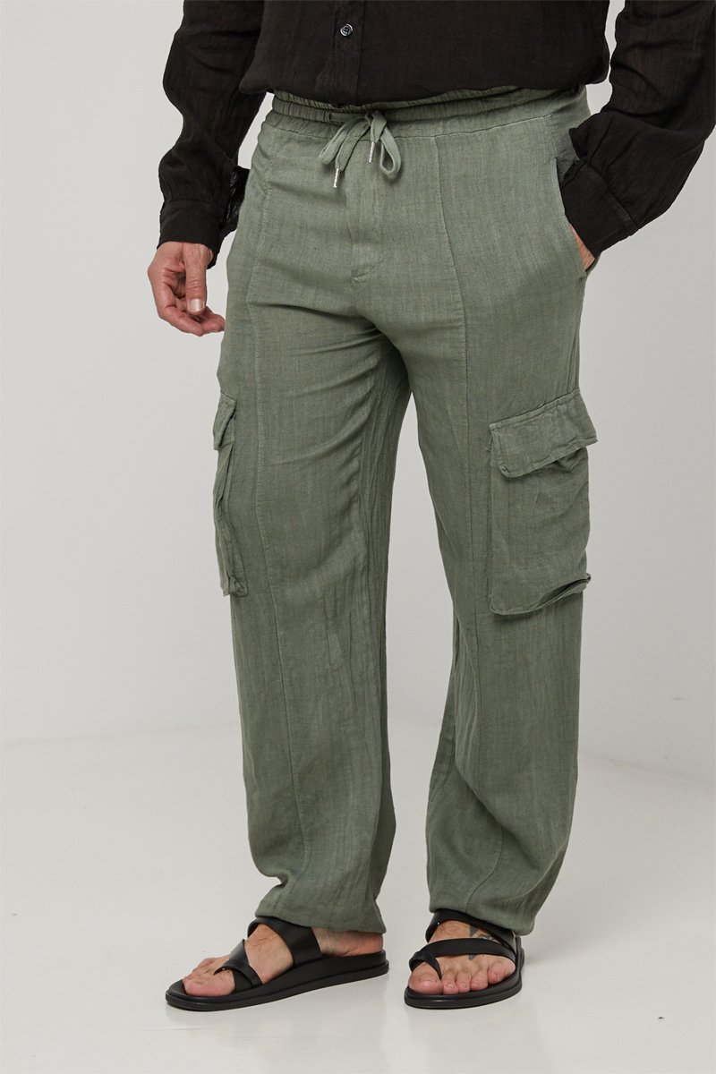 Linnen Cargobroek - Kaki - 100% linnen - Kaki