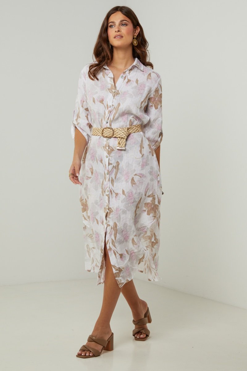 Lange blouse-jurk van linnen met driekwart mouwen.