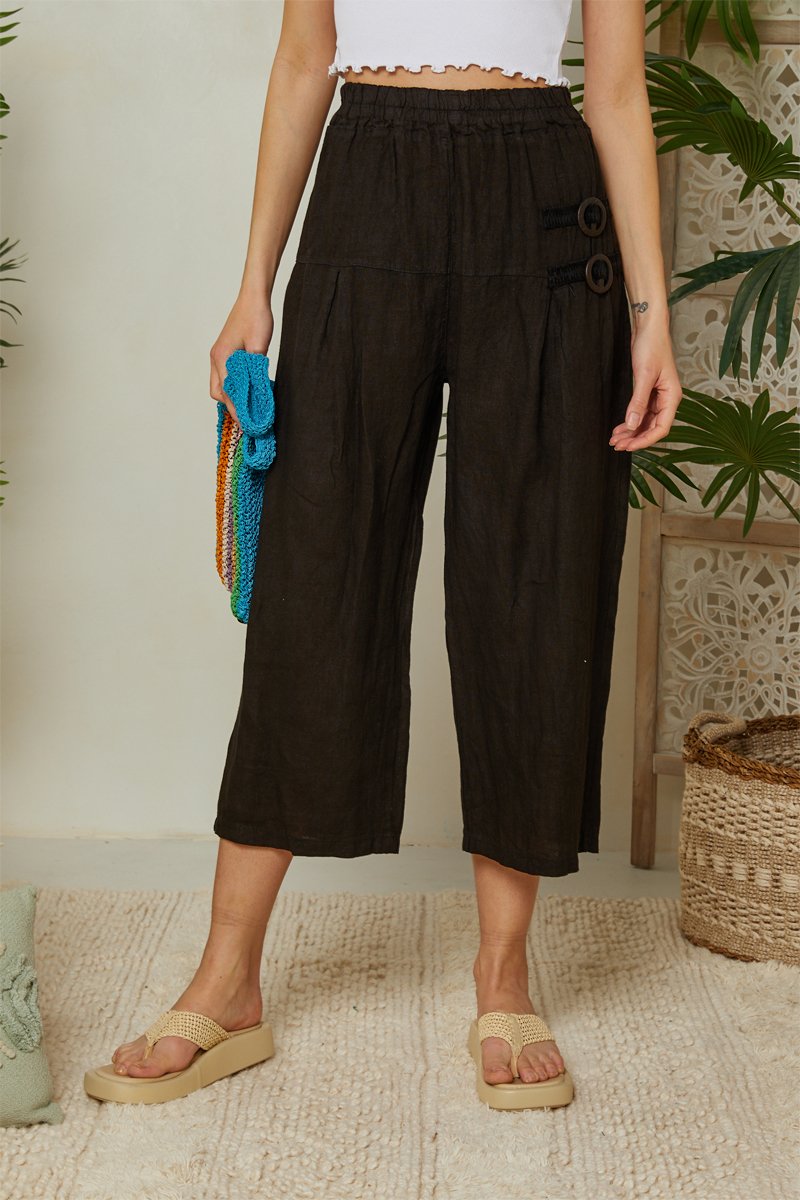 Linnen Driekwart Broek - Zwart - Zwart
