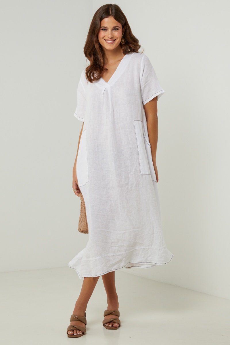 100% Linnen Jurk - Wit - Wit