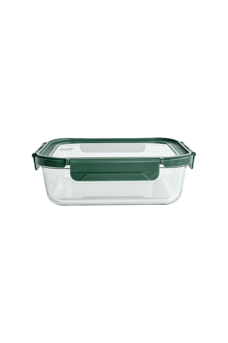 Bakje van borosilicaatglas met deksel.