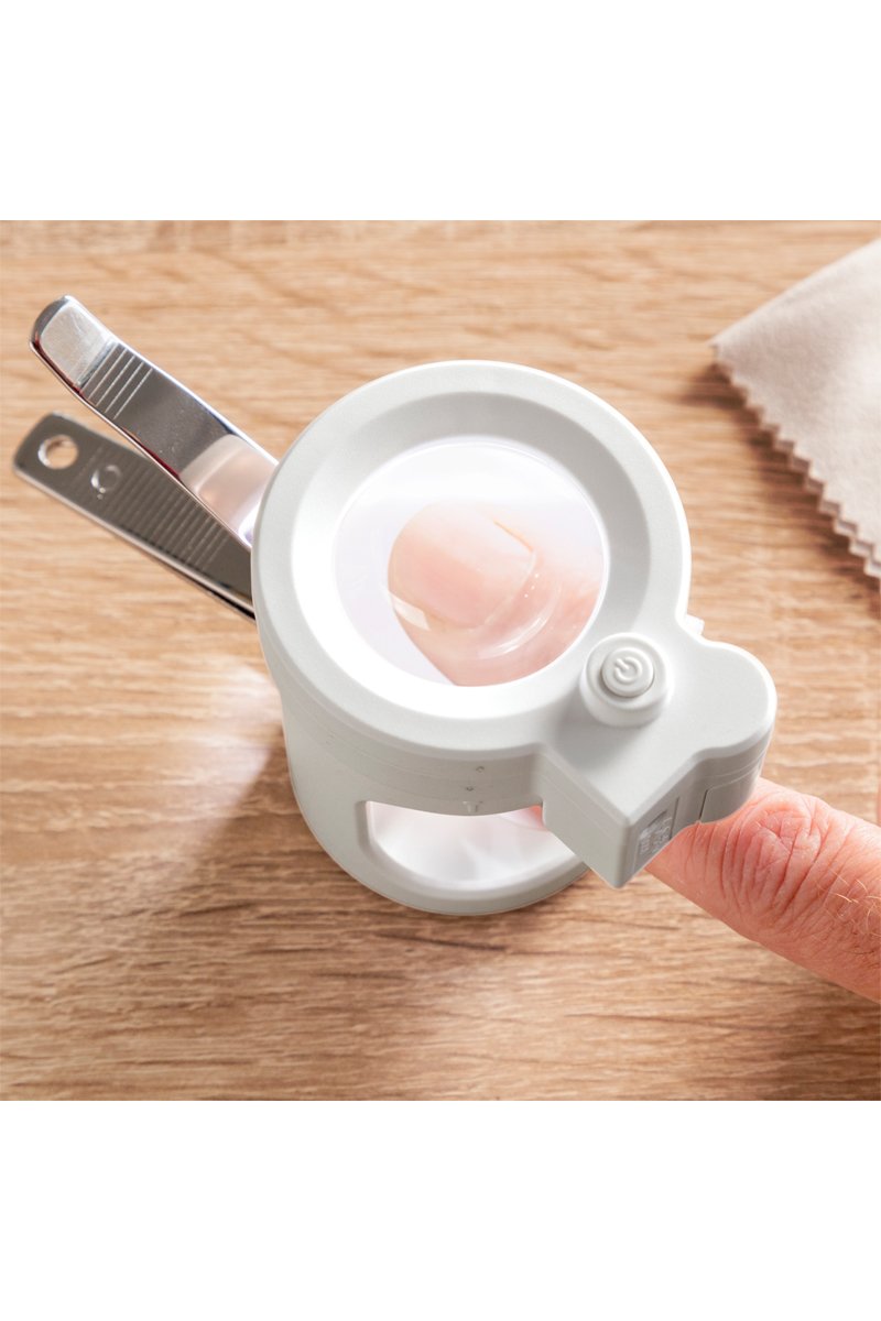 Nagelknipper met loep en vijl.