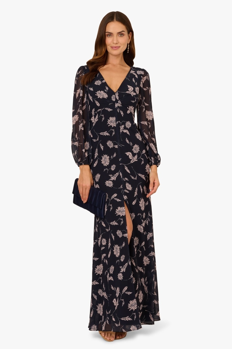 Lange jurk met lange mouwen.