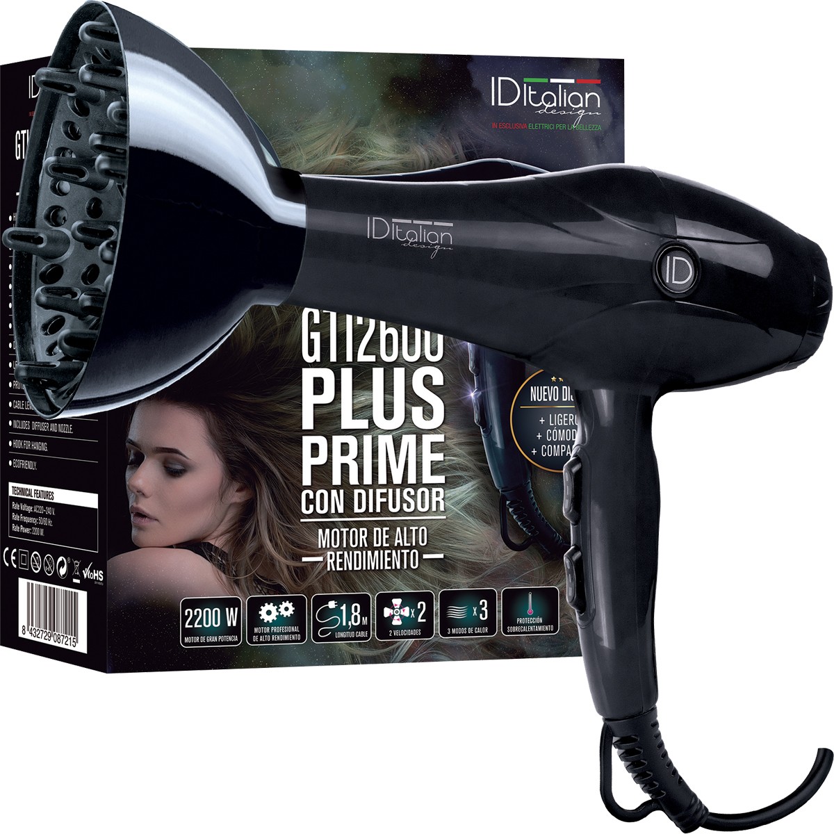 Föhn met diffuser - GTI 2600 Plus Prime - Zwart - 2200 W