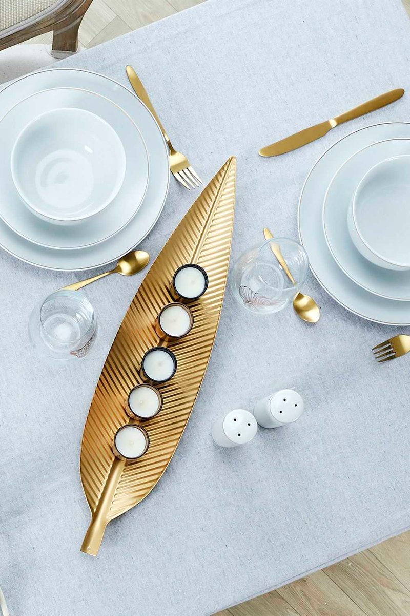 In de vorm van een blad.