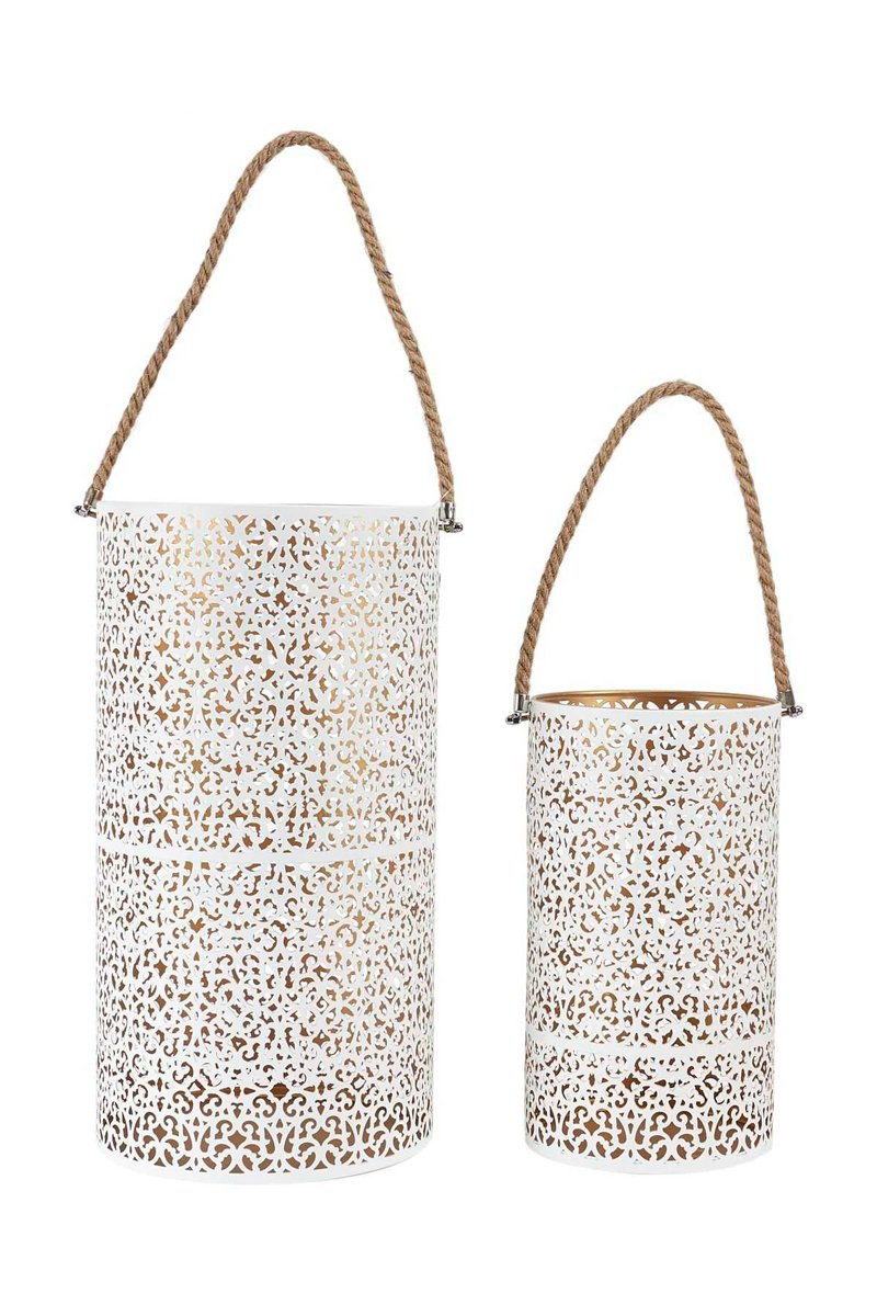 2 Lantaarns - 39 en 42 cm - Wit en Goudkleurig