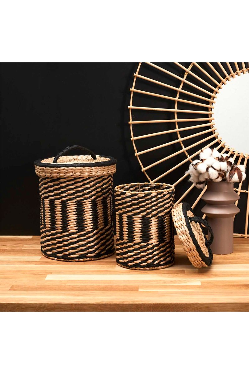 2 Opbergmanden met Deksels - Naturel en Zwart