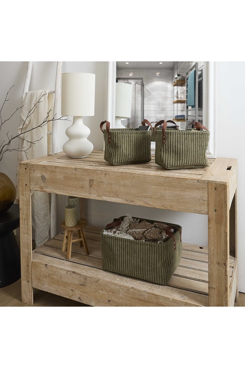 3 Velours Opbergmanden - Groen - 36 x 26 x 20 cm