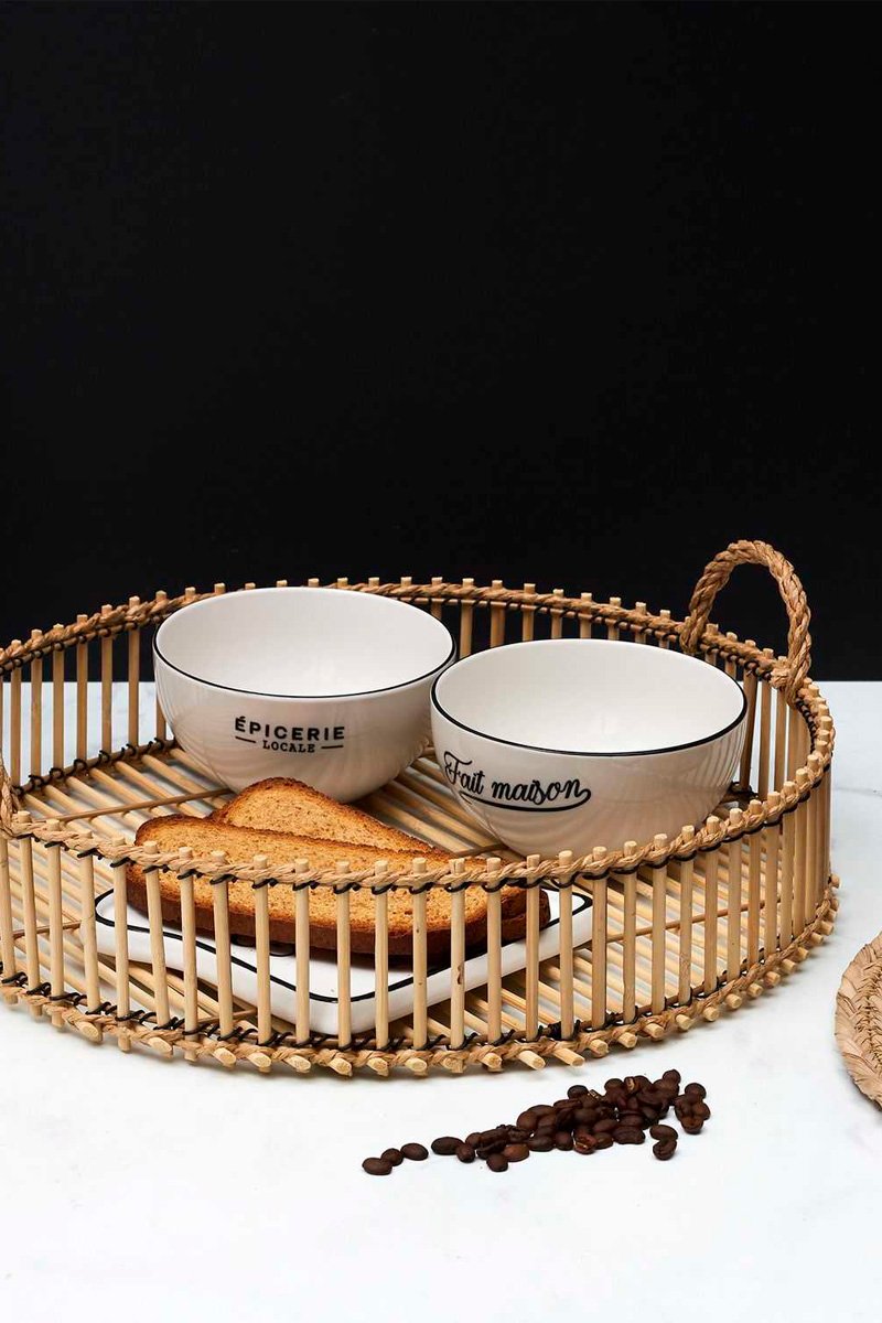 Rond dienblad van bamboe.