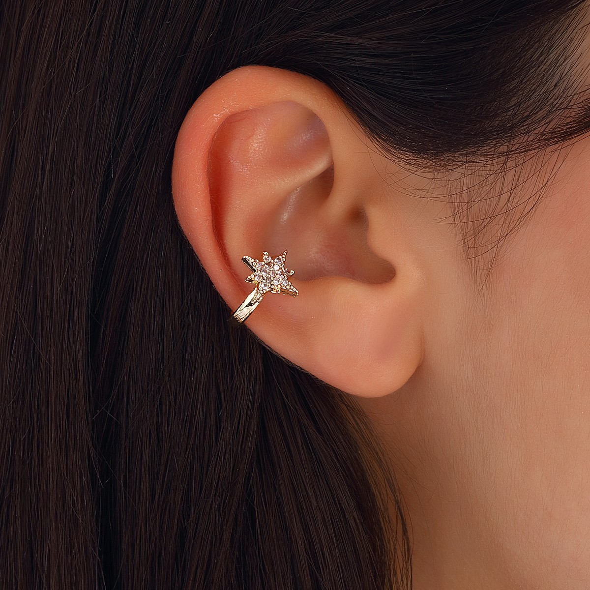 Een gewaagde earcuff. Verfijnd design. Draag hem alleen of in combinatie met andere oorbellen.