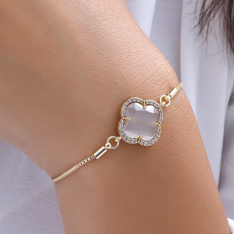 Armband - Messing Doublé Goud, Kattenogen & Zirkonia’s - Wit