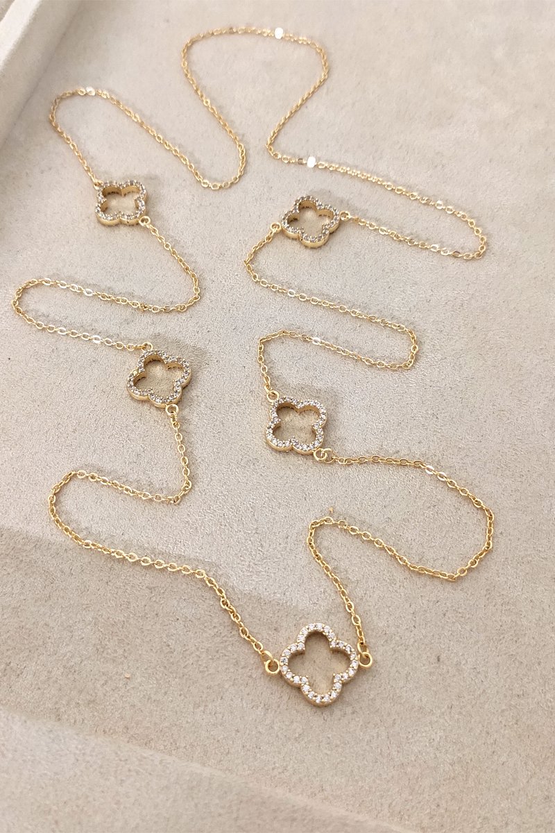 Lange ketting van verguld messing ingelegd met zirkonia’s.