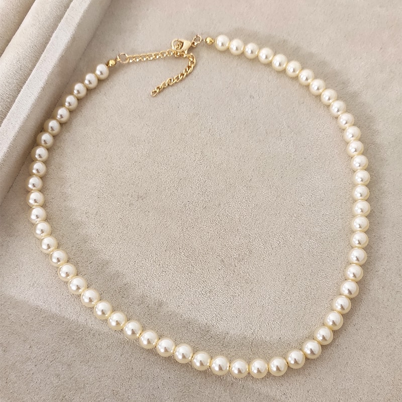 Ketting - Messing Doublé Goud & Parels - Wit