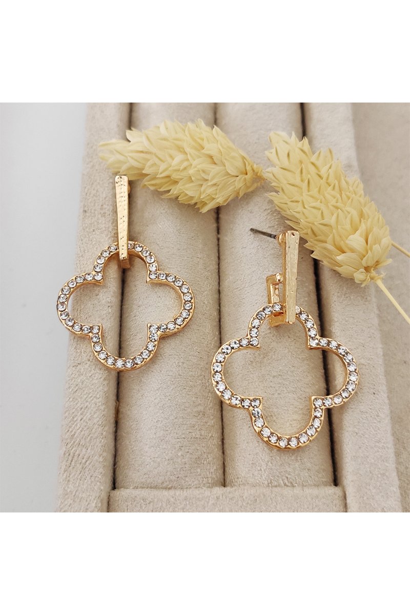 Hangende oorbellen van verguld messing ingelegd met zirkonia’s.