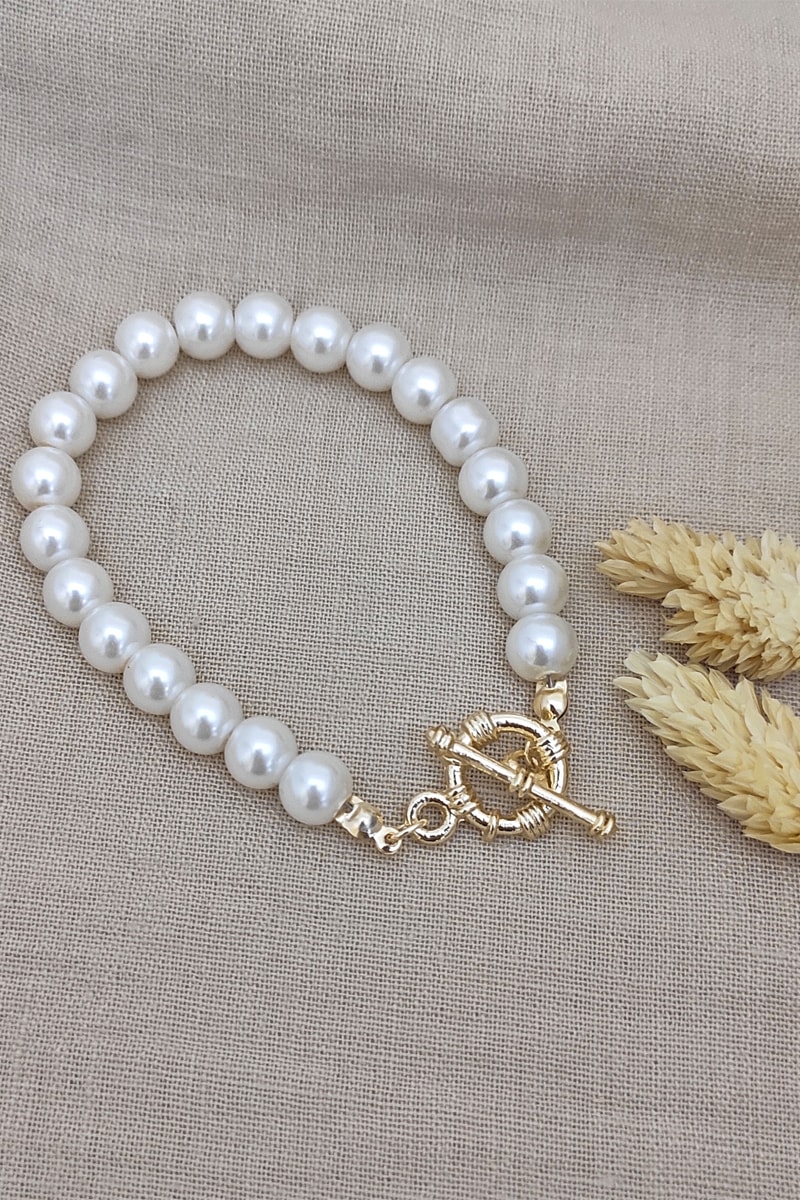 Armband van doublé geelgoud ingelegd met kunstparels.