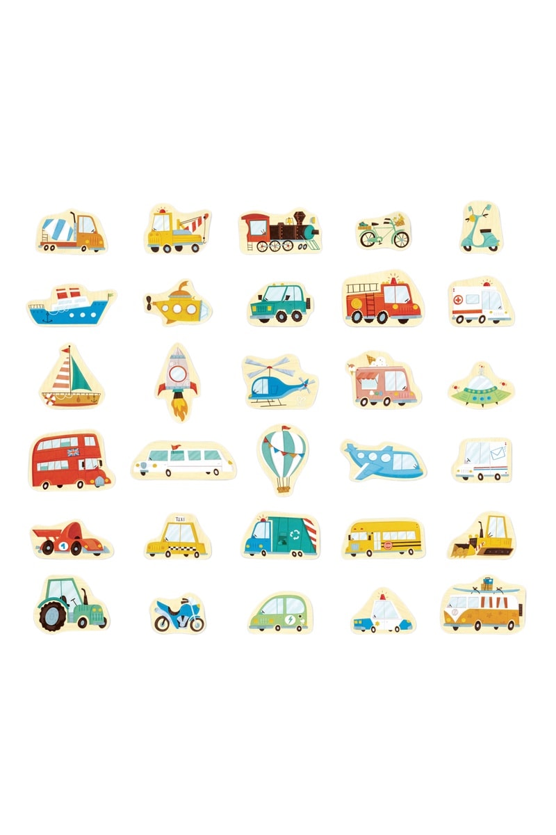 Dit spel bevordert de fijne motoriek, de herkenning van vormen en de ontdekking van vervoermiddelen.