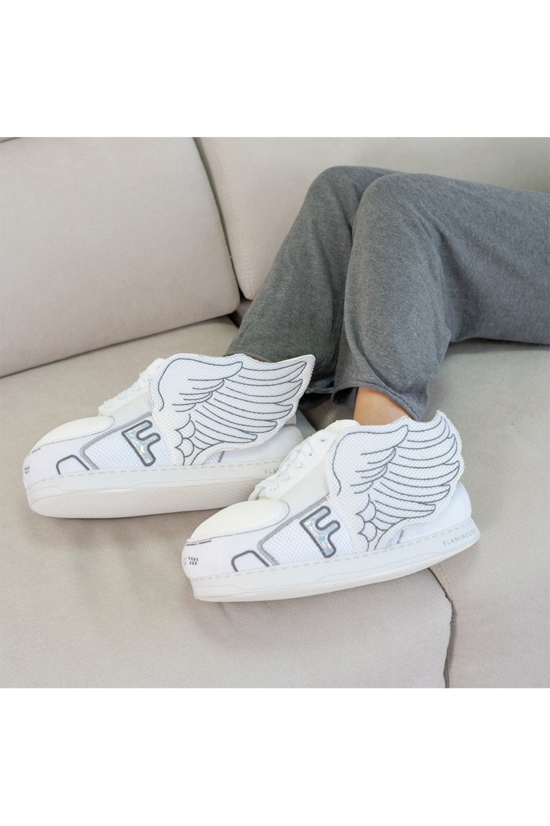 Detail in vleugelvorm en geborduurd logo aan de zijkant.